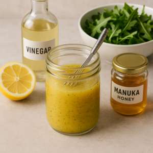 This versatile dressing blends tangy lemon and mustard with the distinctive depth of Manuka honey. Ideal for leafy salads, grain bowls or drizzling over roasted vegetables — it’s a social-media-friendly, pantry-first recipe that elevates simple dishes.