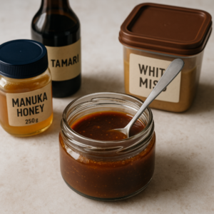 A versatile dairy-free dressing that pairs the floral depth of Manuka honey with creamy tahini and savoury white miso. Trend-forward, gut-friendly and ready in minutes — perfect for salads, grain bowls or as a drizzle over roasted vegetables.