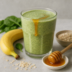 Creamy kefir and ripe banana blended with porridge oats, spinach and a generous drizzle of Manuka honey for natural sweetness. High in probiotics and fibre, this smoothie makes a quick, nourishing breakfast or post-workout pick-me-up.