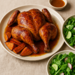 This Kiwi-style roast elevates a simple spatchcocked chicken with a manuka honey and miso glaze for glossy, caramelised skin and a rich umami depth. Served with roasted kumara and dressed greens, it’s fuss-free comfort food that’s great for family dinners or entertaining.