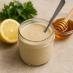 A simple, trendy dressing that balances earthy tahini, tangy wholegrain mustard and the floral depth of Manuka honey. Quick to whisk together and ideal for meal-prep — flavours deepen if left to rest.