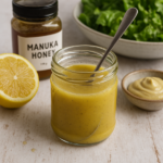 A quick, emulsified salad dressing that pairs floral Manuka honey with tangy lemon and sharp Dijon. Perfect for leafy salads, roasted vegetables or as a glaze for grilled fish — made in minutes and left to meld for a rounded flavour.