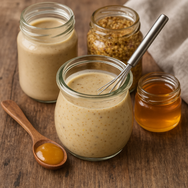 A simple, trendy dressing that balances earthy tahini, tangy wholegrain mustard and the floral depth of Manuka honey. Quick to whisk together and ideal for meal-prep — flavours deepen if left to rest.