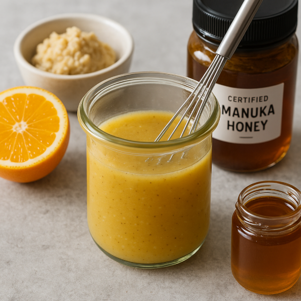 A bright, umami-rich dressing sweetened with New Zealand Manuka honey — perfect for salads, grain bowls and roasted veg