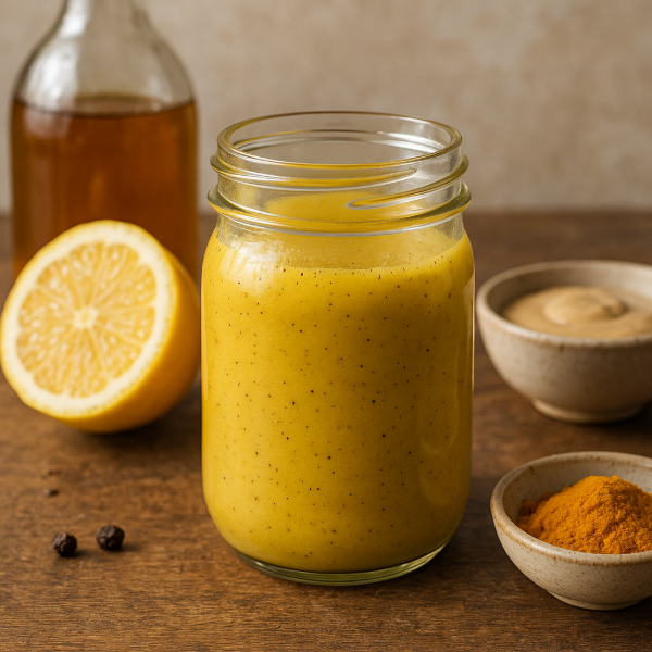 A versatile vinaigrette that balances tangy lemon and apple-cider vinegar with creamy tahini and Manuka honey. Turmeric and black pepper add an anti-inflammatory trend-forward twist — perfect for salads, roasted veg or as a drizzle for grain bowls.