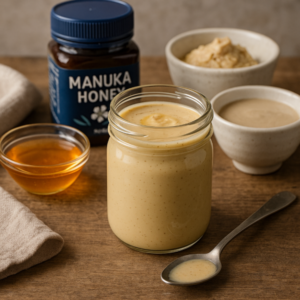 A tangy, slightly sweet dressing that pairs with leafy salads, roasted vegetables or grilled fish. Uses Manuka honey for depth and a touch of New Zealand flavour — aligns with current pantry-led, wellness-focused salad trends and citrus-forward dressings popular on social media.